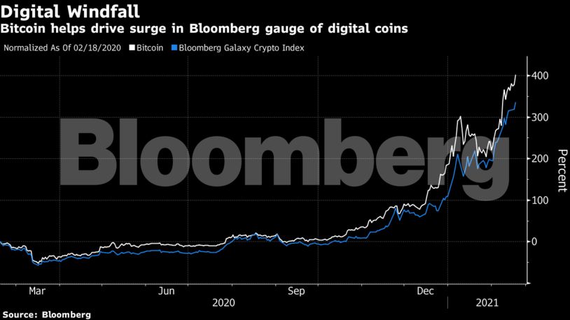 Το Bitcoin συνεχίζει να ξεπερνά τα όρια που θέτει για τον εαυτό του. Το πρόσφατο ράλι οφείλεται στην πρόσφατη επένδυση σε κρυπτονομίσματα από δύο επιχειρηματικούς κολοσσούς όπως η Tesla Inc και η MicroStragey Inc. H εταιρεία του Ελον Μασκ προχώρησε σε επένδυση $1,5 δισ. σε κρυπτονομίσματα, ενώ η MicroStrategy σχεδιάζει την επέκταση της επένδυσής της μέσω της πώλησης ομολόγων αξίας $600 εκατομμυρίων. Στην αντίπερα όχθη των τοποθετήσεων αυτών, αρκετοί υπολογίζουν πως η επενδυτική μανία αυτή θα καταλήξει να έχει την ίδια μοίρα με το “σκάσιμο” της φούσκας όπως το 2017.