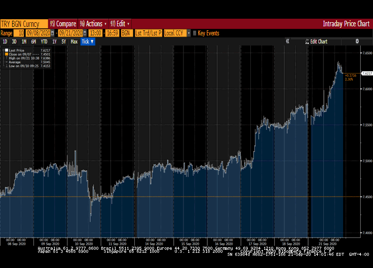 Η θέση swap η οποία έχει διπλασιαστεί από την αρχή του έτους περιλαμβάνει επίσης τα δανεικά δολάρια που έχει πάρει ο Ερντογάν από το Κατάρ του Εμίρη-συμμάχου του τα οποία του χάρισαν μια περίοδο ηρεμίας στις αγορές συναλλάγματος (από τις αρχές Μαϊου ως τις αρχές Αυγούστου – είναι το ευθύγραμμο τμήμα στο παρακάτω διάγραμμα).