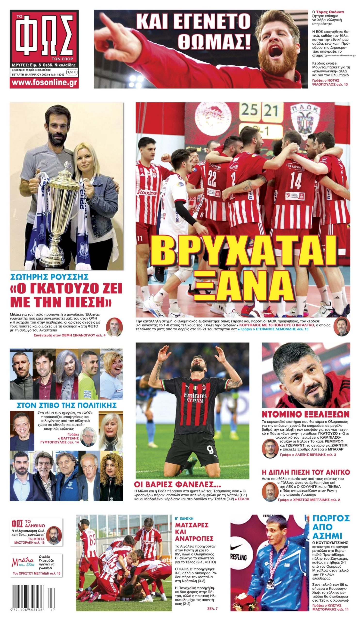 Share Facebook Twitter LinkedIn Pinterest Email Δείτε τα πρωτοσέλιδα των πολιτικών, οικονομικών και αθλητικών εφημερίδων. Οι αθλητικ πρωτοσέλιδα
