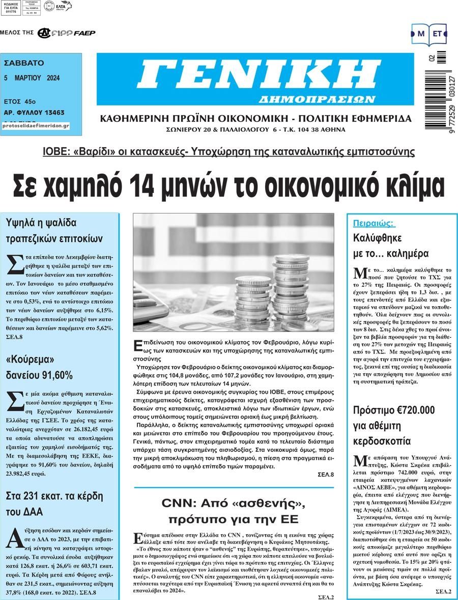 Share Facebook Twitter LinkedIn Pinterest Email Δείτε τα πρωτοσέλιδα των πολιτικών, οικονομικών και αθλητικών εφημερίδων. εφημερίδες