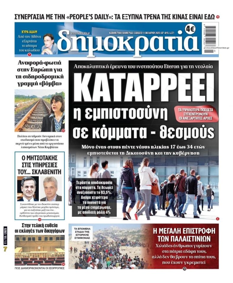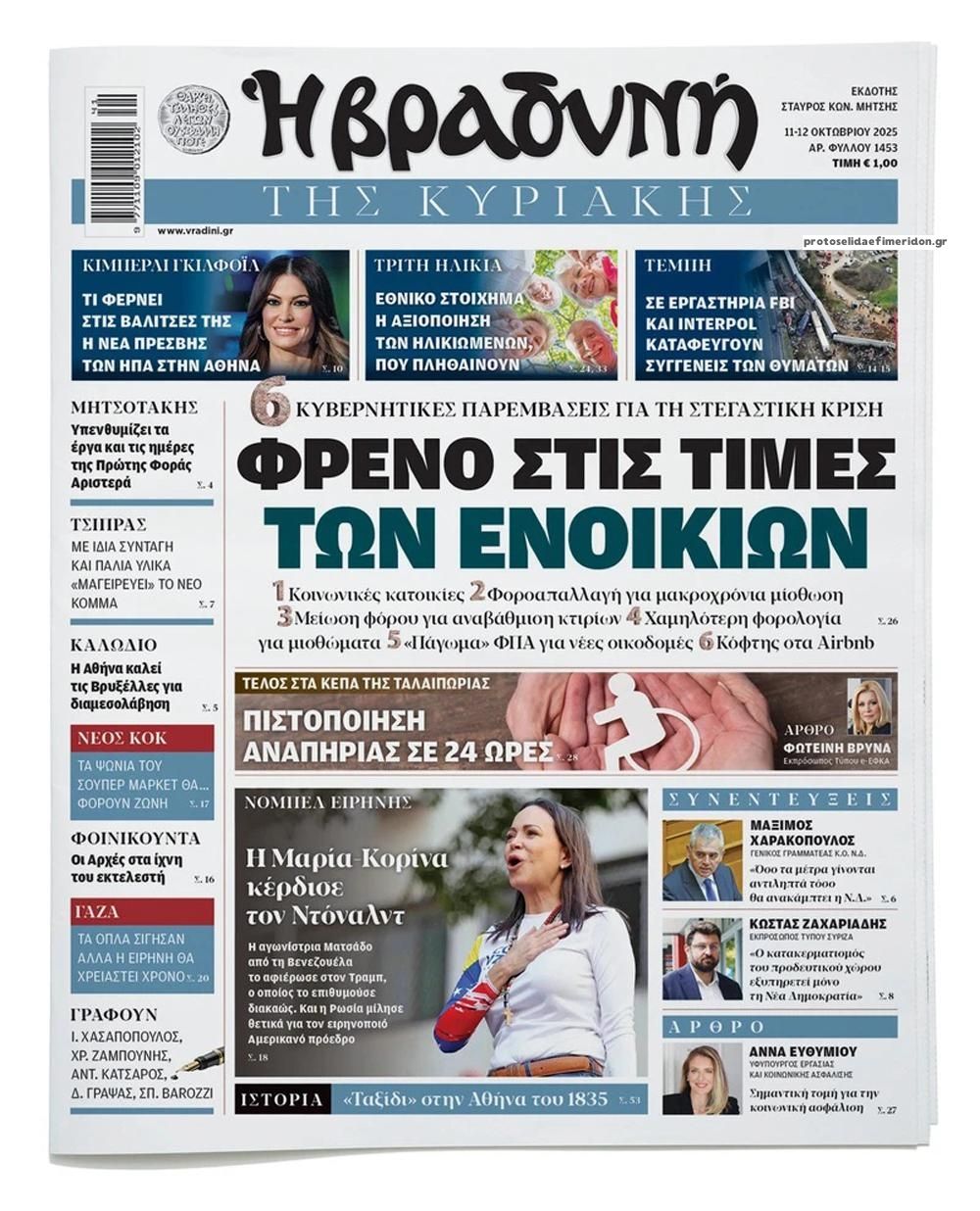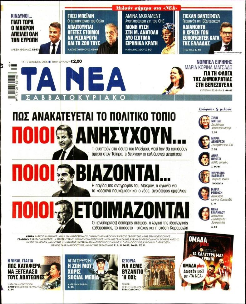 Share Facebook Twitter LinkedIn Pinterest Email Διαβάστε τα πρωτοσέλιδα από τις πολιτικές εφημερίδες, σήμερα 11/10/2025. Διαβάστε τα πρωτοσέλιδα από τις αθλητικές εφημερίδες, σήμερα 11/10/2025. εφημερίδες πρωτοσέλιδα